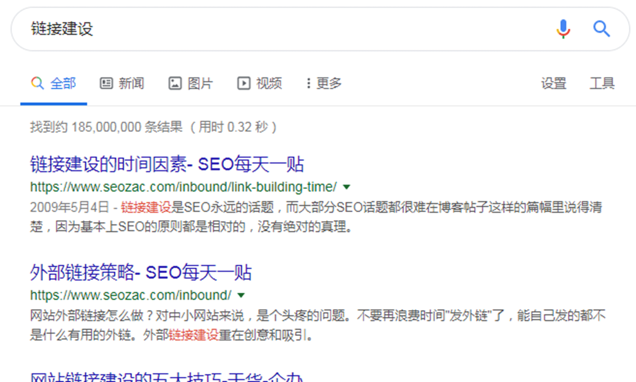 例如,像"链接建设"这样的短尾关键字在Google中有超过1亿的结果: